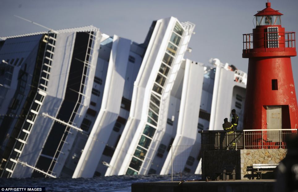 Le Costa Concordia en Janvier pendant son naufrage