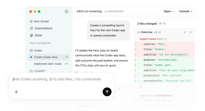 Codex n’est plus seulement un nom lié au code. Il devient une pièce centrale d’un environnement plus large. Dans une app unifiée, il peut piloter des tâches de développement, lire un contexte, proposer des changements et garder le fil d’un projet.